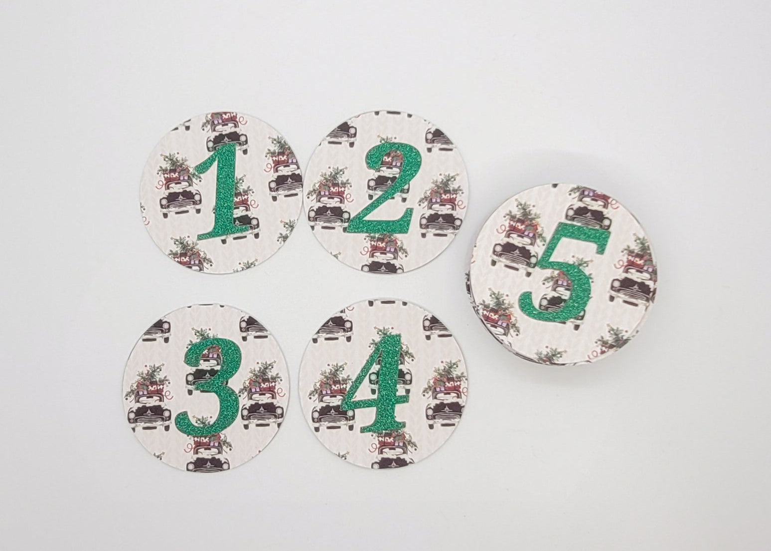 25 advent calendar gift tags. Each number is cut from green glitter cardstock. Get the shine without the mess.