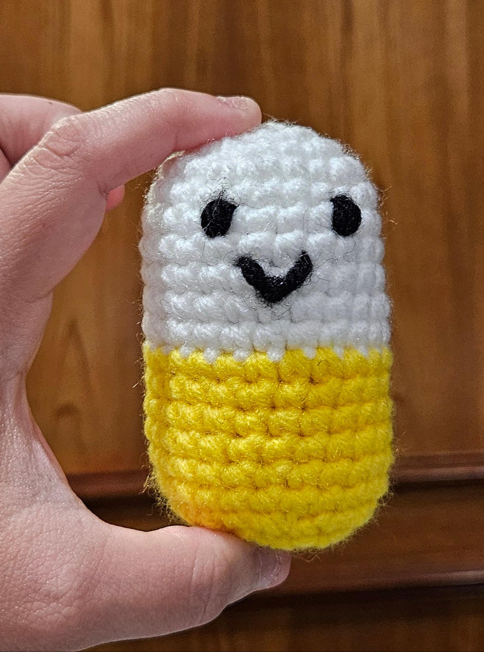 Handmade Crochet Chill Pill Plush – Funny Stress Relief Get Well Gift for Nurses, Teachers, and Office Workers