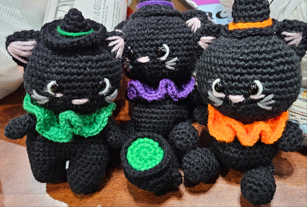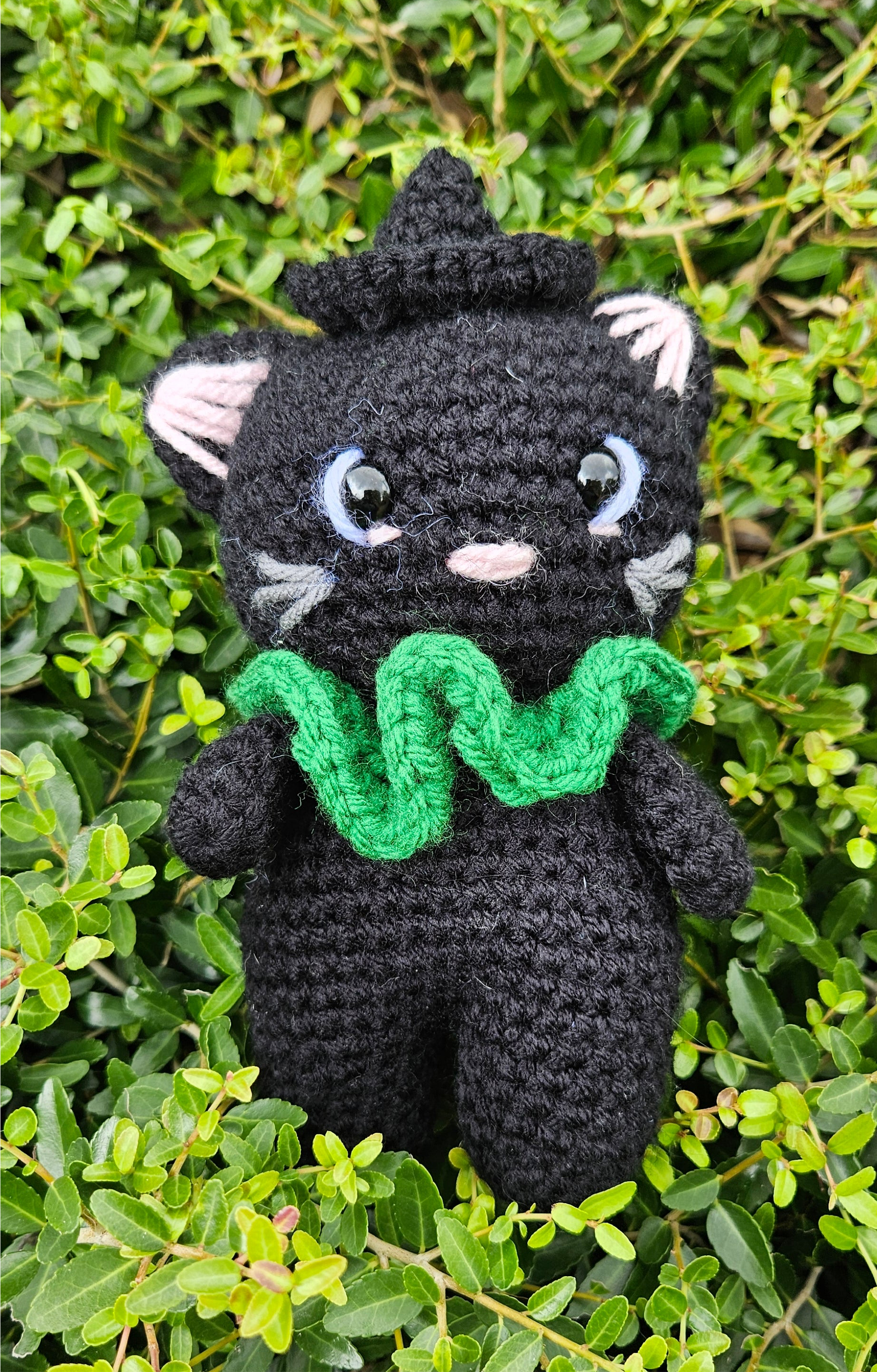 Get ready for a purr-fect addition to your Halloween decor with our handmade crochet witchy kitty! This plushie is the ideal combination of cute and spooky, making it a must-have for any Halloween lover. Embrace the magic of handmade with this charming kitten.