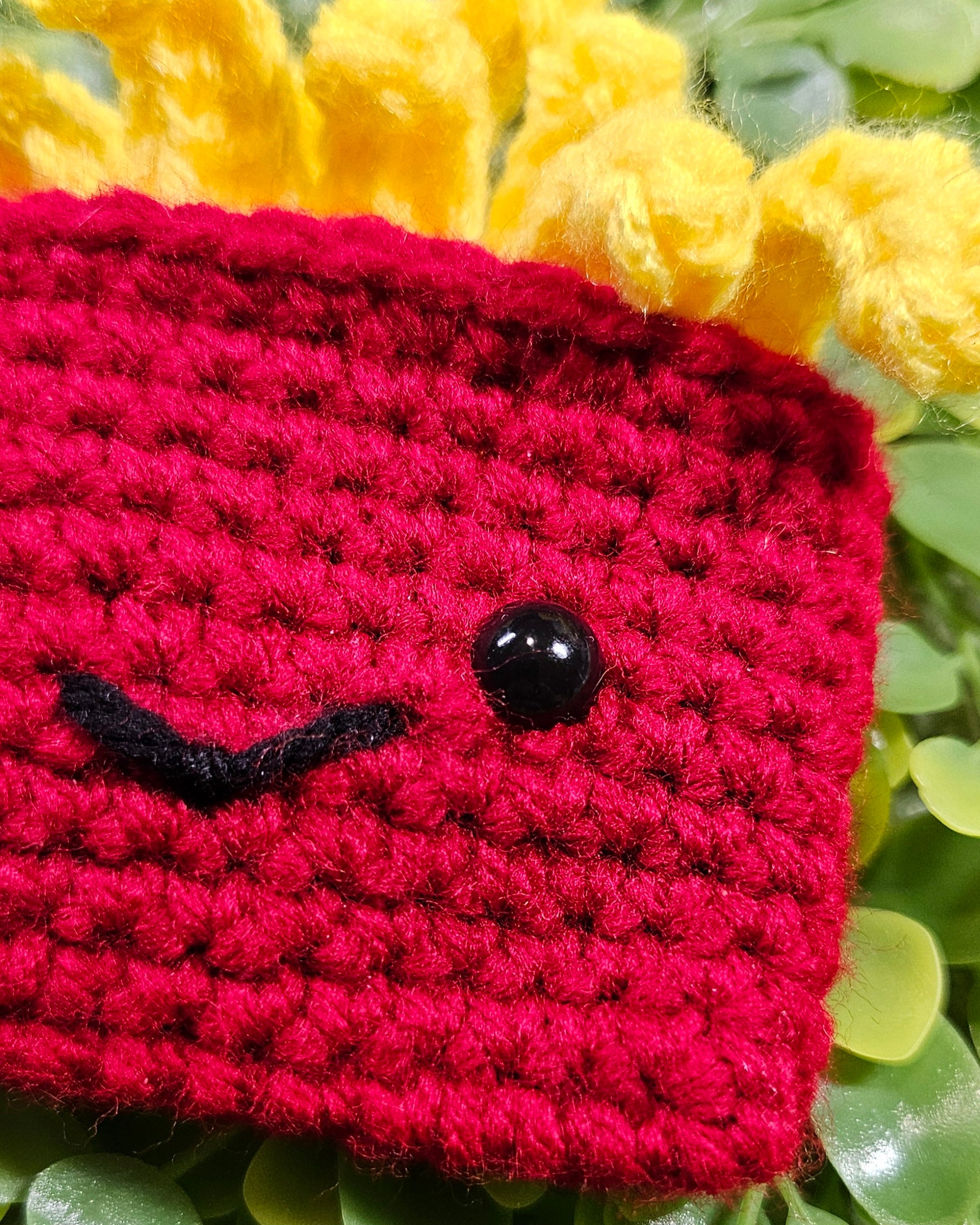 Each fry is carefully stitched to perfection, snuggled in a soft red crocheted "carton," and ready to be your new favorite buddy. Unlike real fries, these won’t go soggy or require napkins. They may still disappear when others see how cute this is!