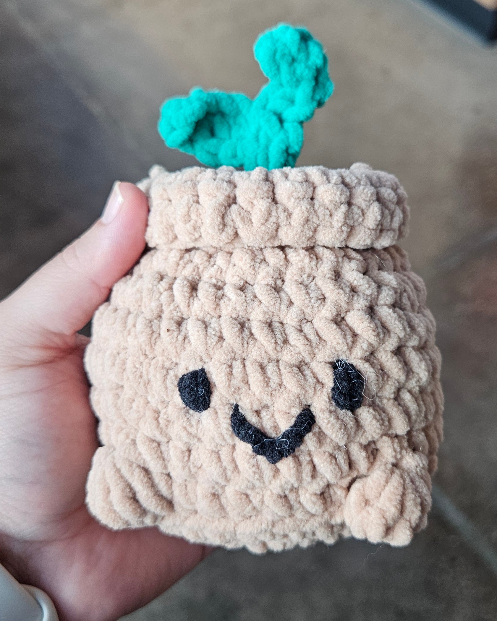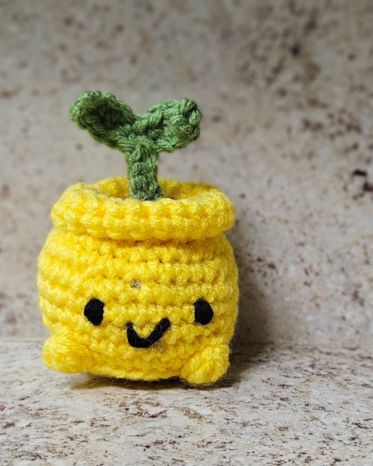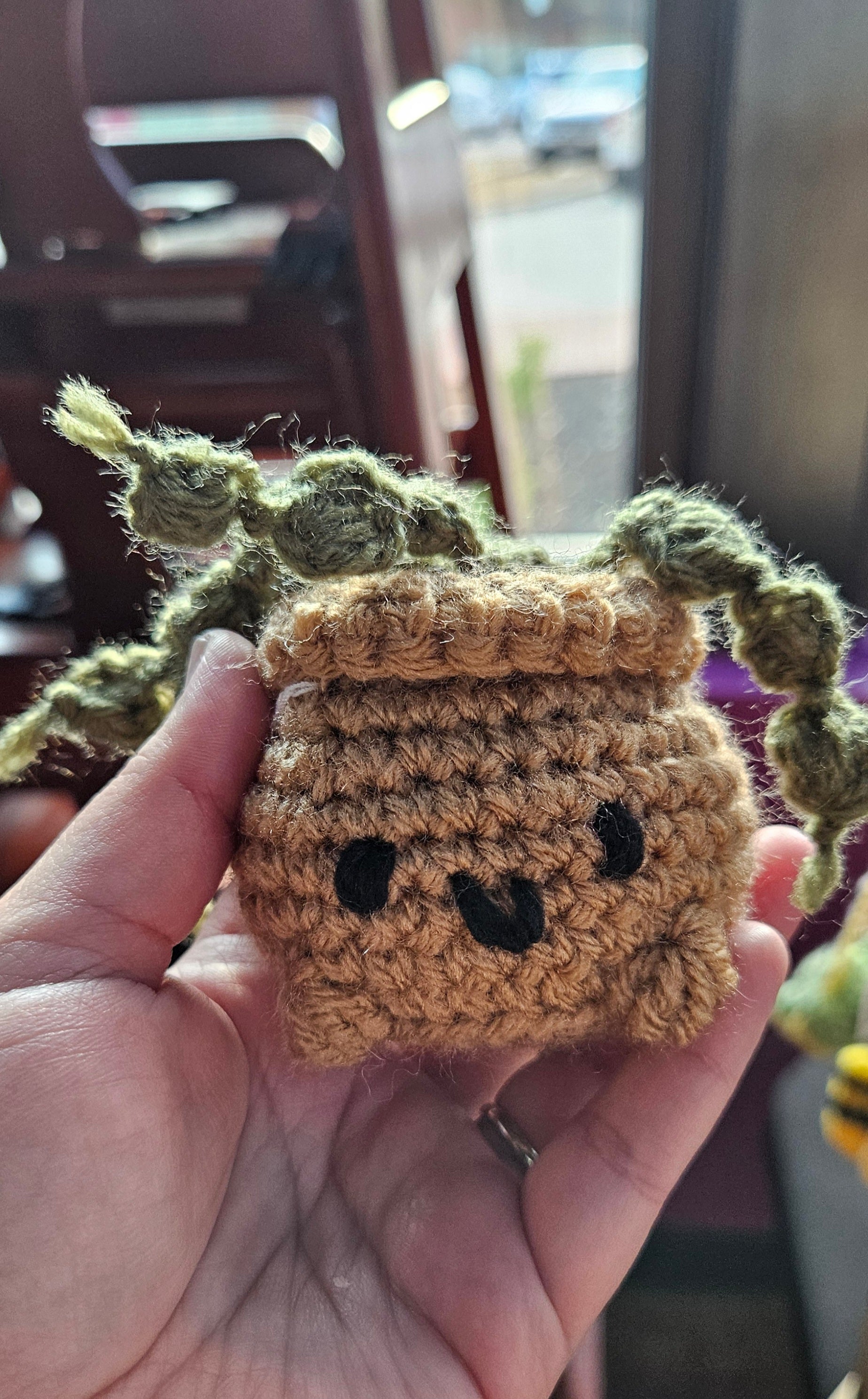 Don't have a green thumb? Want to be a plant mom or dad but don't have much space? Add a touch of greenery to your decor - no watering required - with one of our crochet plant plushies! Our charming, handmade plushies come in different styles, including a tiny sprout, a succulent, or string of pearls, all emerging from a squishy little pot. Each plant features a sweet expression for added personality. Perfect for plant lovers, cozy decor enthusiasts, or as a cute desk companion, this miniature creation brings a pop of nature-inspired joy anywhere you place it.