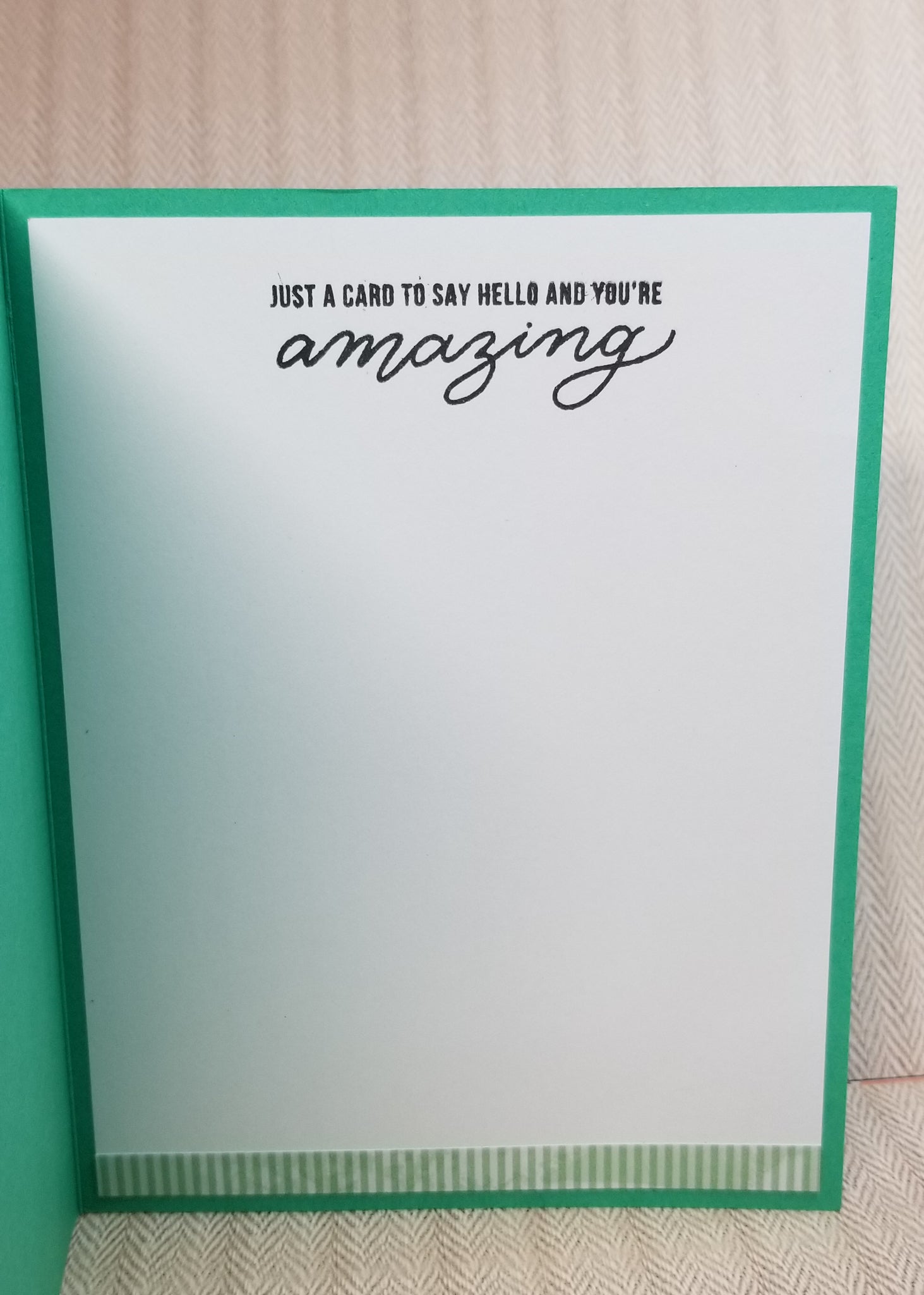 Card with star on the right side reads: "Just a card to say hello and you're amazing"
