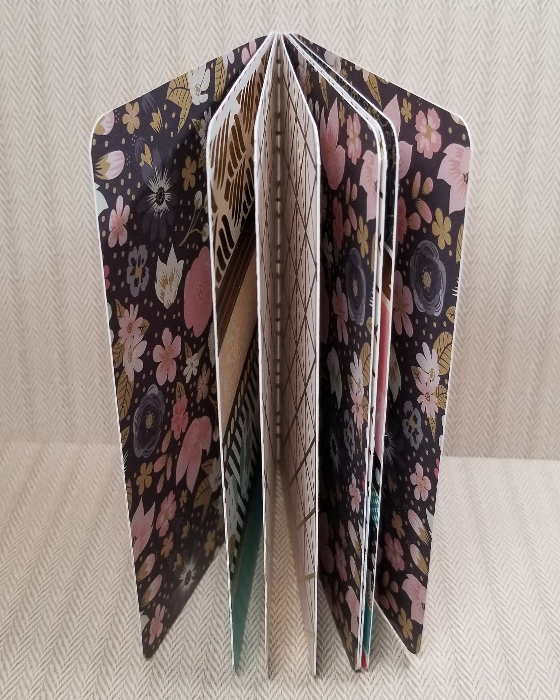 The album is handmade from patterned papers. The pages measure approximately 4" x 6" and all pages, including the cover, have rounded corners to minimize damage to them. There are 16 pages for you to have fun with and decorate to your heart's content on two of the albums. One album has 14 pages.