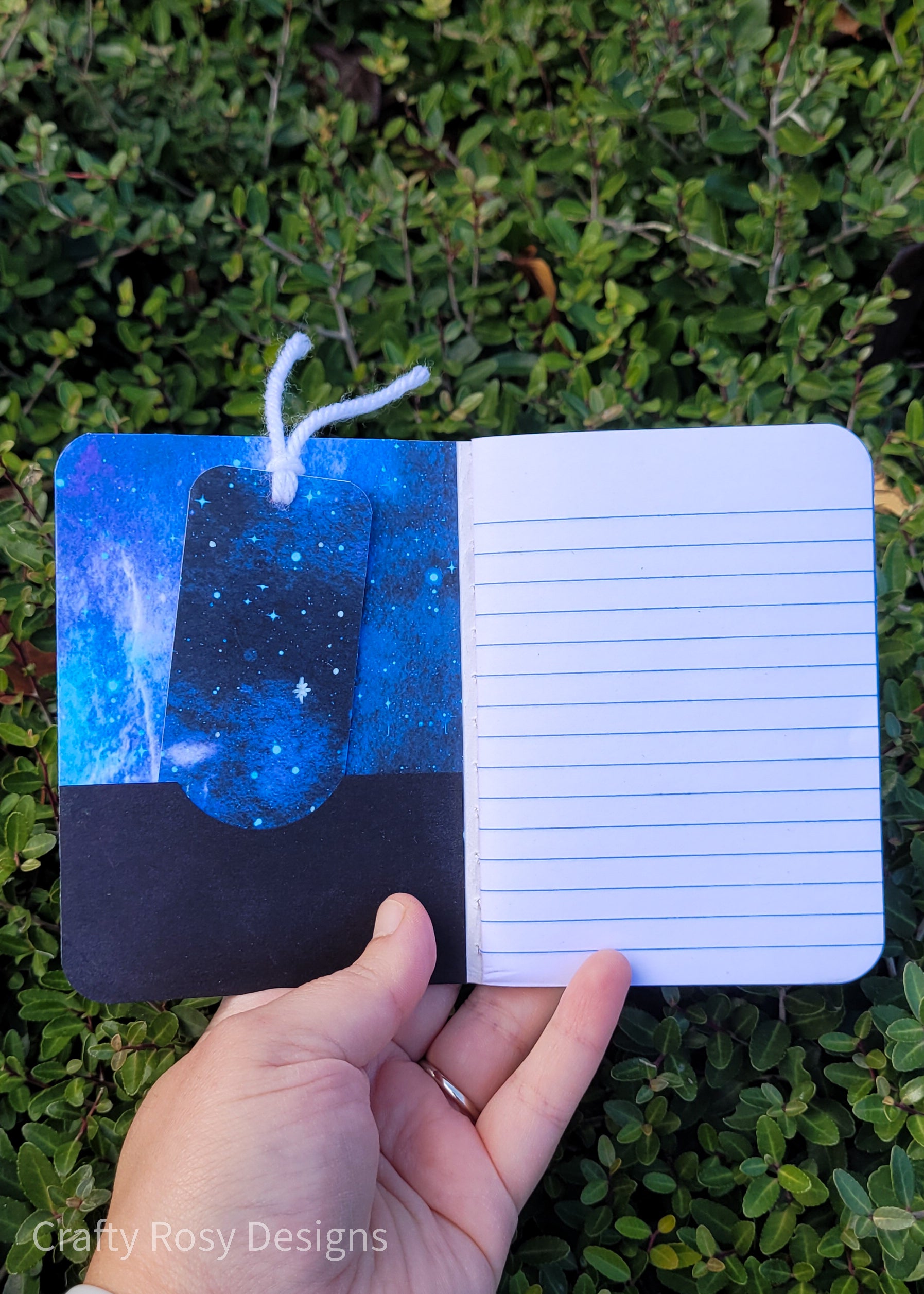 This mini composition notebook is perfect for on-the-go note-taking and list-making. Each notebook has an included bookmark that coordinates with the custom cover design and ensures you never lose your place. There is also a little pocket on the inside front cover to hold the bookmark or any other little notes and ephemera. These mini notebooks are perfect for writing down notes and lists, brain dumps, journaling, doodling, or anything else you may think of.