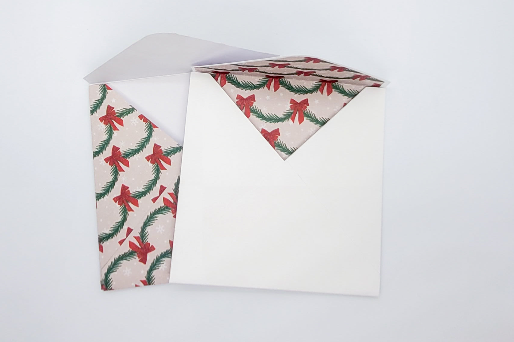 - 4 coordinating envelopes (2 white and lined inside, 2 patterned)
